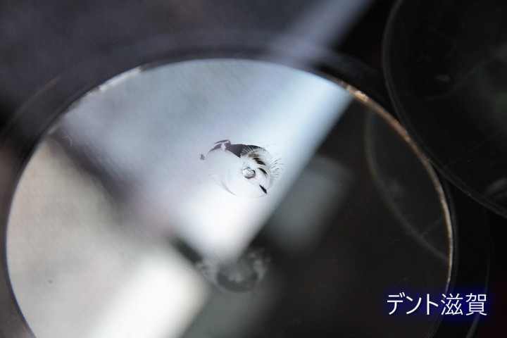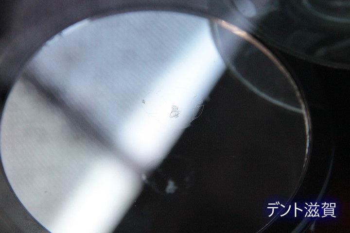 なかなか派手目な衝撃点2ヵ所ある形状のキズですが、昨日に割れてスグにテープを貼ってもらってたので内部の状態はGooD
