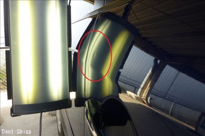 ※施工例には作業用蛍光灯を映り込ませ、ヘコミを見やすくしております