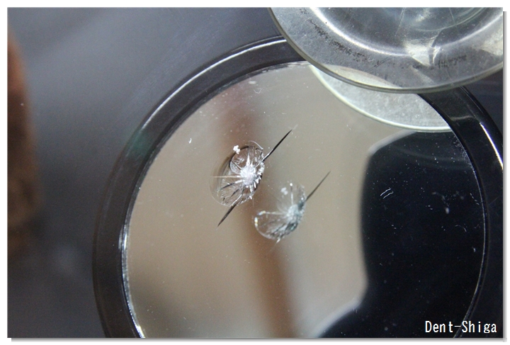 衝撃点が大きく陥没していて、アダプターを使ってのリペアです。