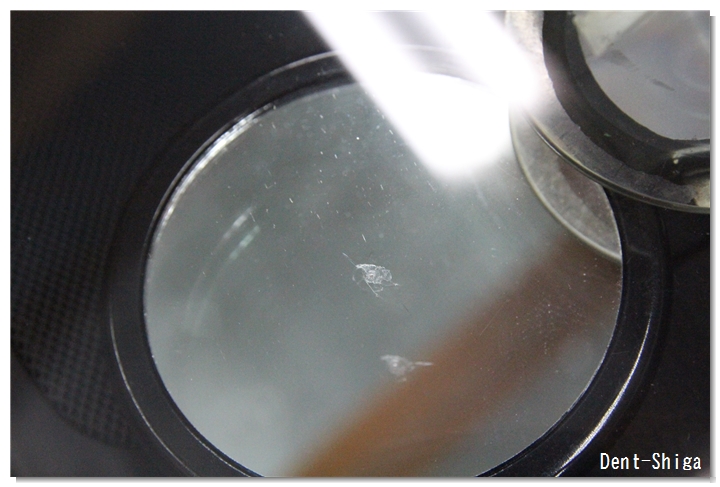 衝撃点部分のガラス欠けが大きめな状態でしたが、問題なくリペア完了~~