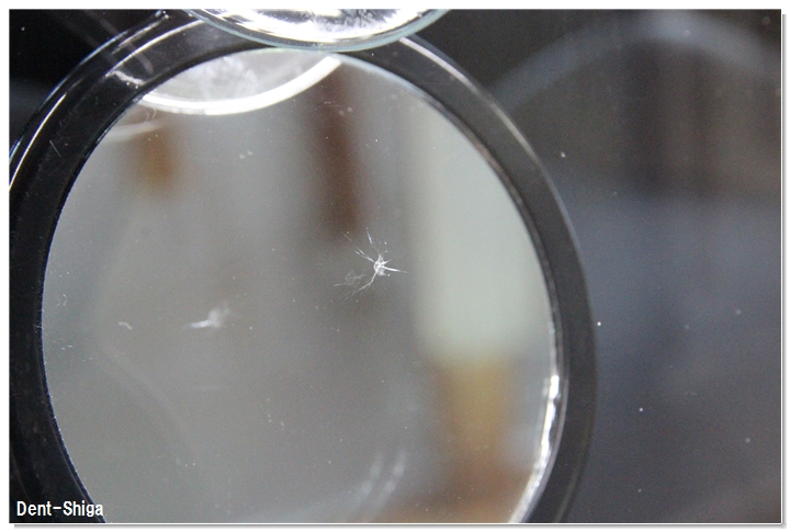 フロントガラスリペアのご依頼で、ブルズアイとは少し違う・・いびつなひび割れ状態です