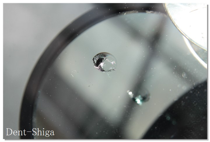 これも数本のキズが衝撃点から離れていますが、これは何らかの原因で部分的にヒビが閉じてしまった状態と思われます