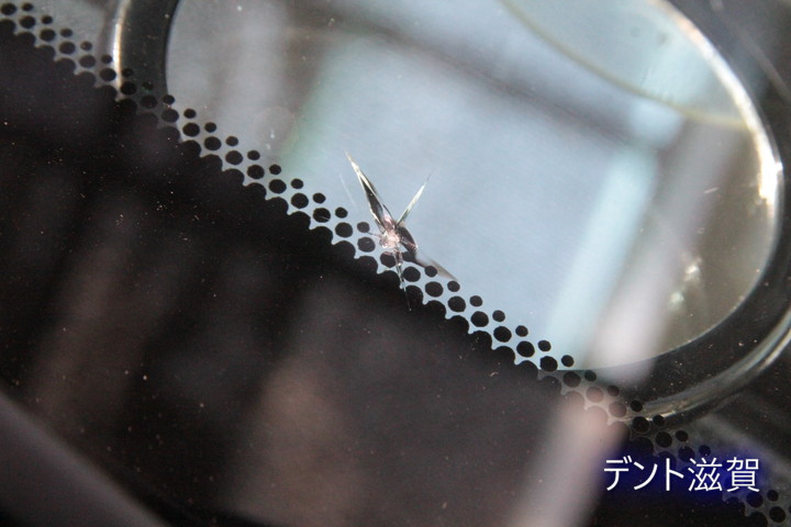 フロントガラスリペアのご依頼ですがガラスのフチ近く、黒セラドット塗装の部分です