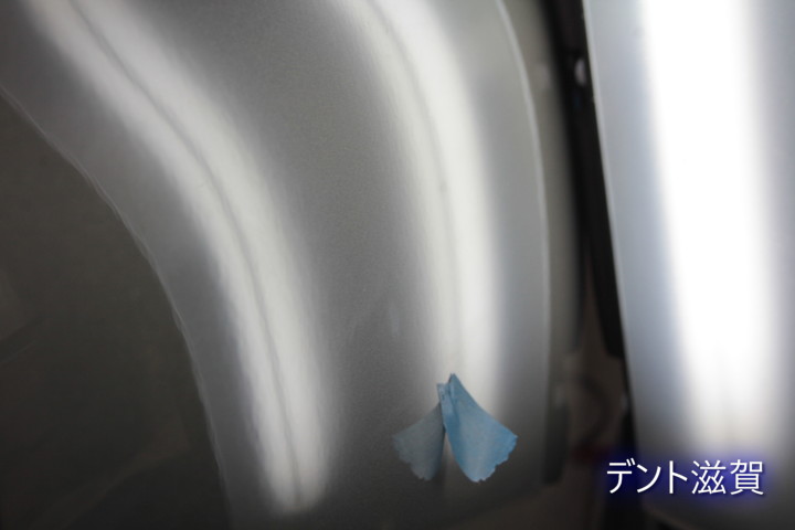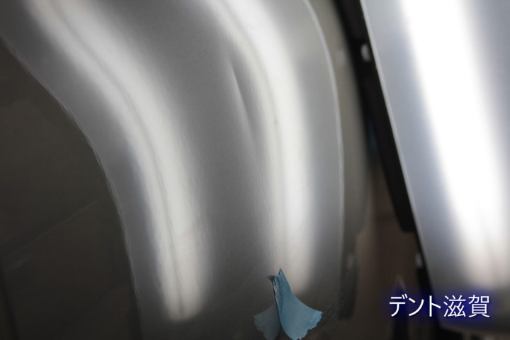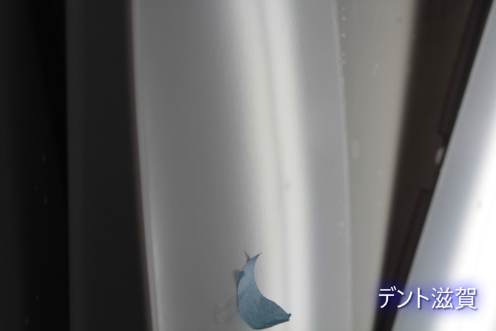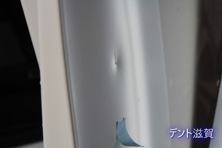 スライドドアに出来たキズを伴う一点集中のシャープなヘコミです