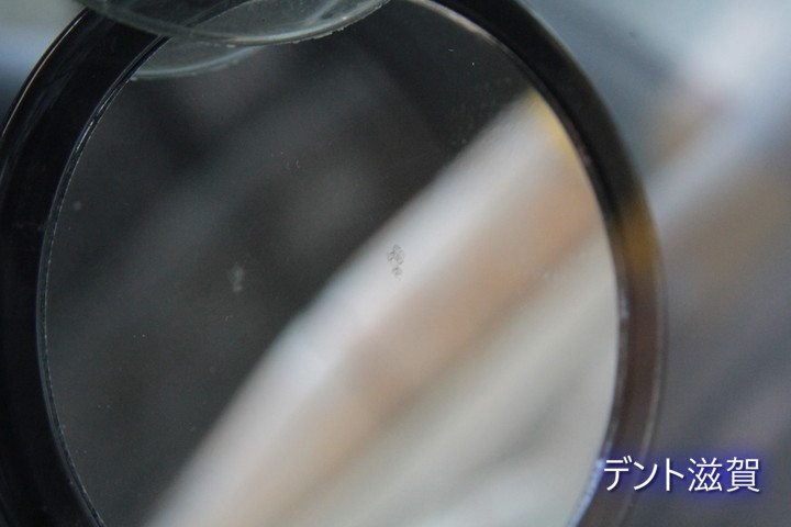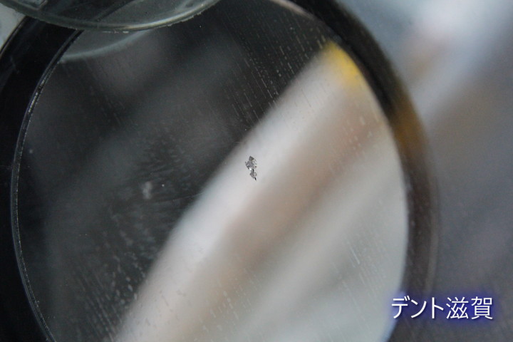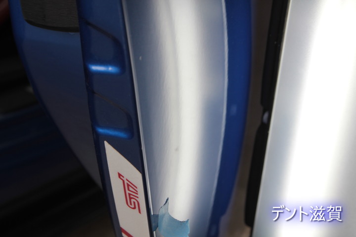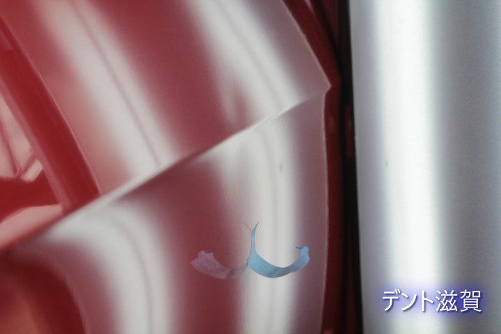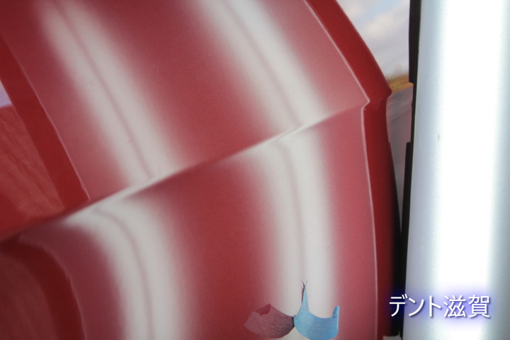 こちらが一番大きい縦長のヘコミ。 ドアの縁に近く耳の折れスジが出てしまってますが・・・