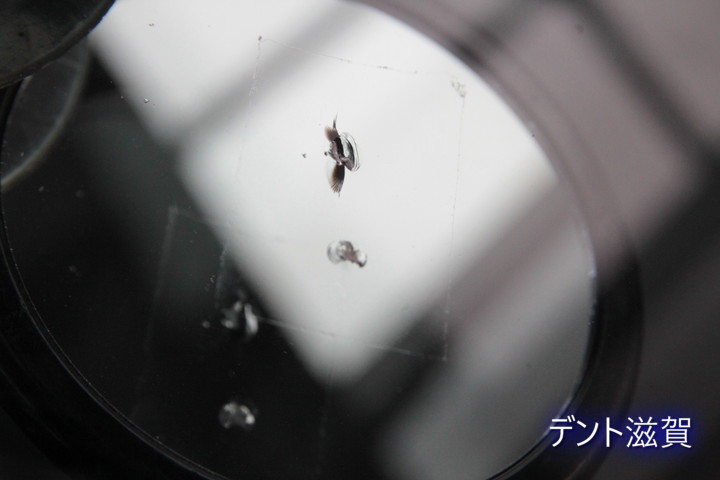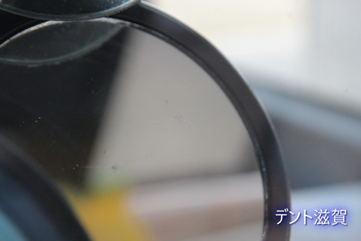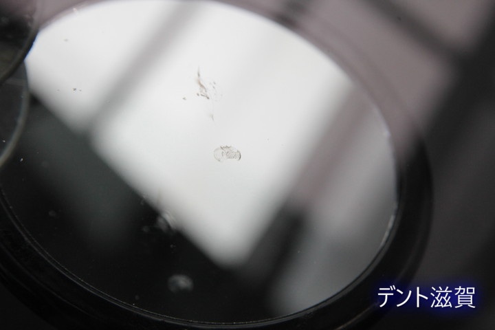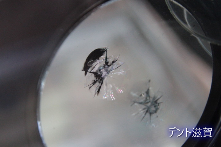 なかなか派手目な衝撃点2ヵ所ある形状のキズですが、昨日に割れてスグにテープを貼ってもらってたので内部の状態はGooD