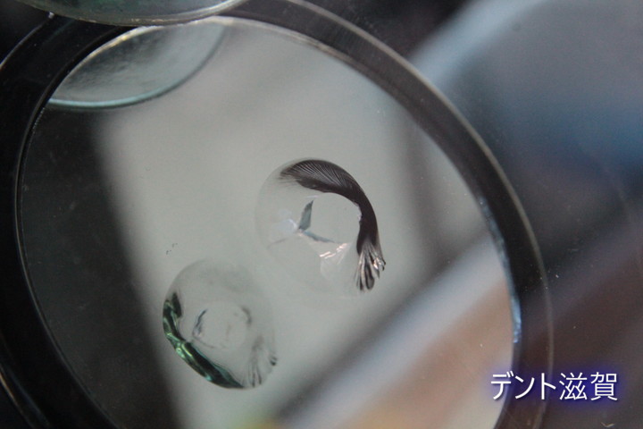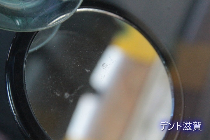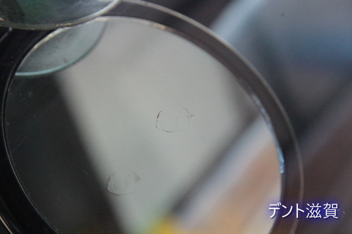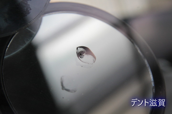 衝撃点が3か所、2つのひび割れキズがくっ付いた形状