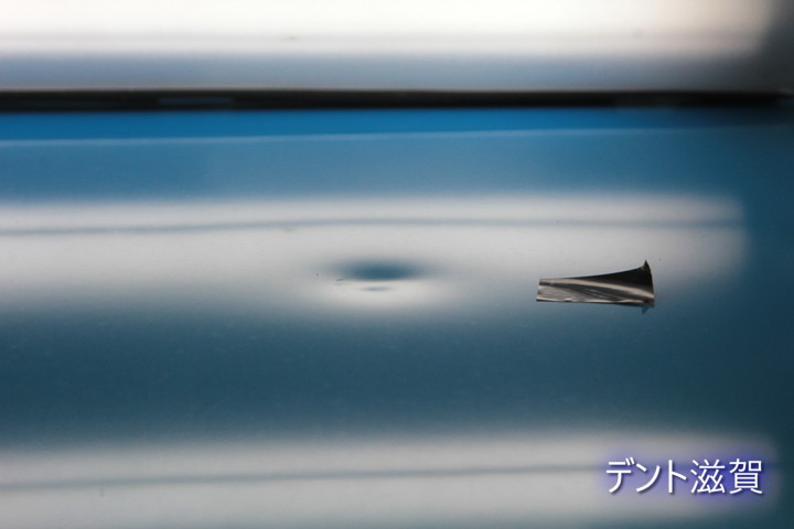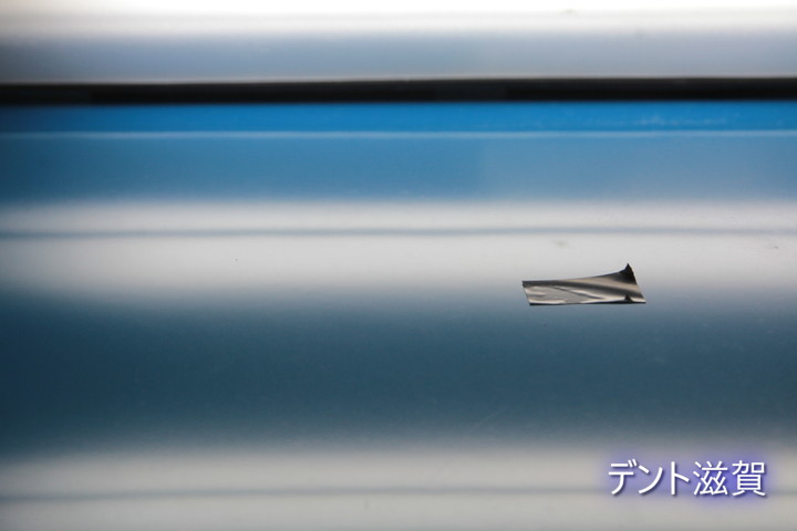 これだけ強く凹むと鋼鈑の伸びが強く出て完全修復は難しくなります