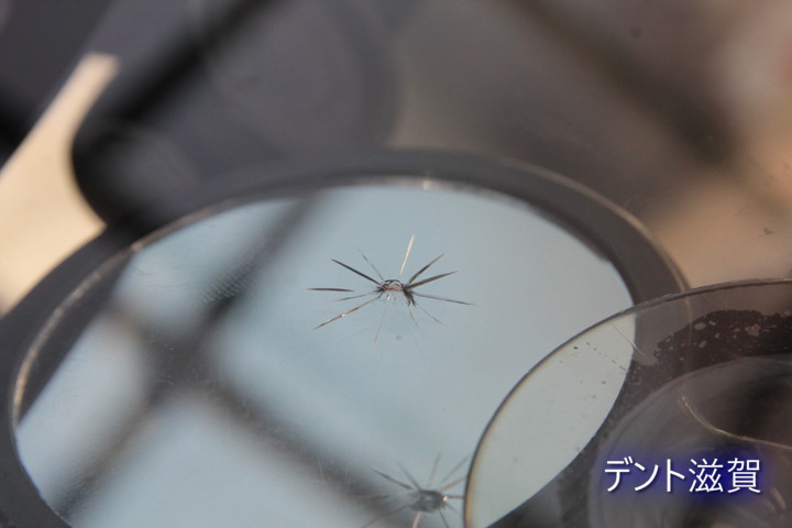 フロントガラスリペアのご依頼ですがキズ内部の状態が心配ですね・・雨に濡れたようです