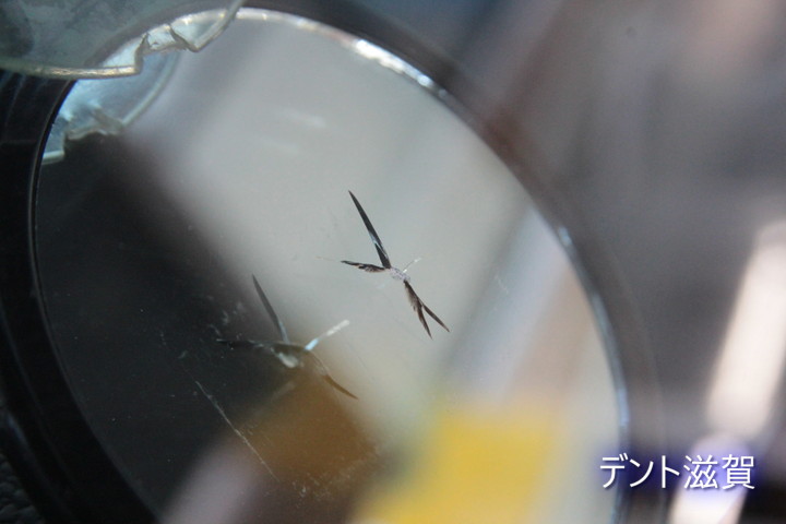 こちらもフロントガラスリペアのご依頼ですが、放射状に幅のあるヒビが数本・・