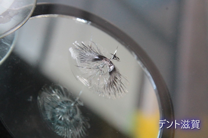 フロントガラスリペアのご依頼ですが・・なかなか派手目なキズの状態ですね汗