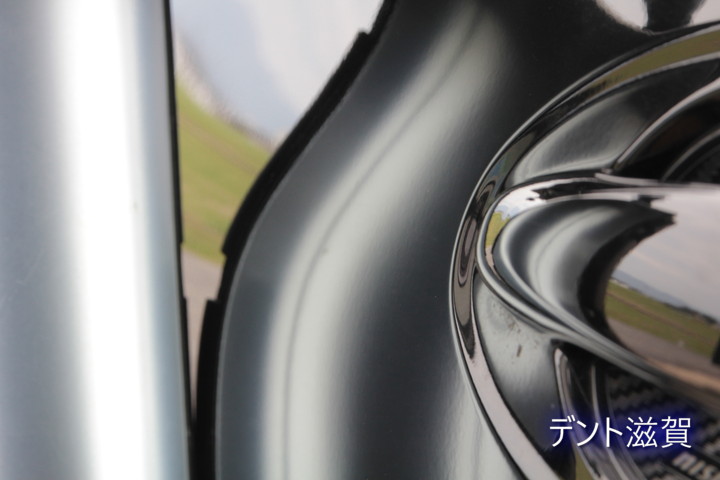自転車を倒してしまったという・・・リヤクォーターにスジ状のヘコミが・・