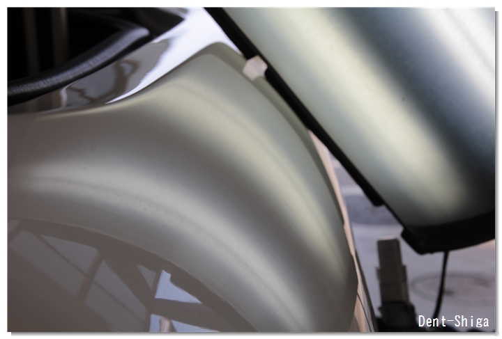それでもデントリペアでヘコミを直すと、作業用ライトを使わない限り殆んど気にならないレベルだと思います。