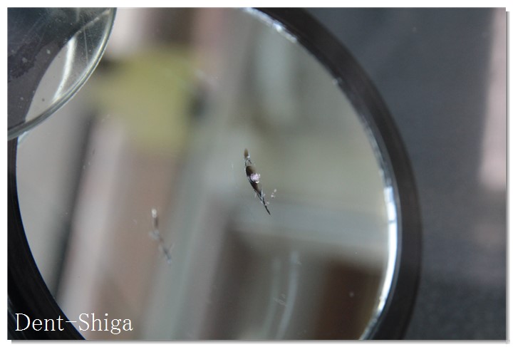フロントガラスリペアのご依頼ですが、キズ内部の状態は良くない感じですね・・汚れや油分が(汗)